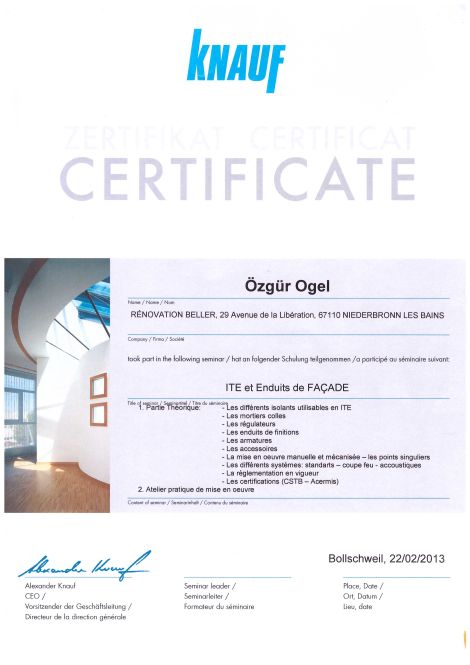Certificat ITE - Isolation Thermique par l'Extérieur